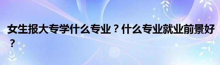 适合女大学生的专业有:护理、英语教育、会展策划与管理、空乘、医学美容等。都是比较好就业的,有很大的发展空间。