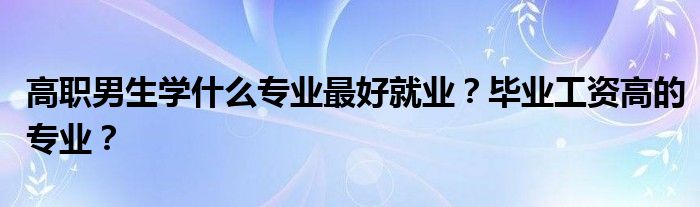 高职男生可以就业的专业有:国际贸易、机电一体化技术、模具设计与制造、汽车、路桥工程、采暖通风与空调工程、机电设备维修与管理等。
