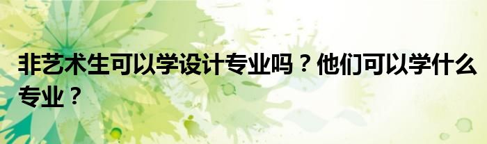 非艺术生可以学设计。第一,除了原画设计、插画设计等岗位,大部分设计工作都是用电脑软件完成的,对美术绘画技能要求不是很高;