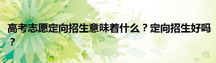 定向生是指为帮助边远地区、少数民族地区和工作环境艰苦的行业培养人才,保证其获得一定数量毕业生而制定的一项政策。自愿填报高校定向就业招生志愿并按相关政策被录取为定向生的考生,须在入学前与高校和定向就业单位签订定向就业协议。