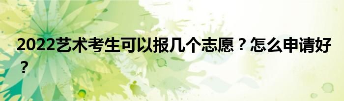 艺术类考生可报三批志愿,每批志愿可填三个专业,即艺术生可填九个。但值得注意的是,每个艺术专业都有自己的优缺点,并不一定适合所有人。希望同学们在填写前能慎重考虑,把能体现自己优势的志愿放在第一位。