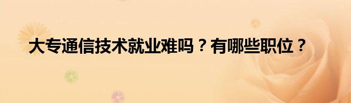 大专通信技术专业就业方向为通信、电子、信息行业的运营商和生产型企业,从事通信设备、电子设备、系统、网络的研究、设计、开发、运营和技术管理工作。边肖整理了相关问题,让我们一起来看看吧!