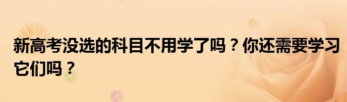 新高考不选的科目不用学吗?目前新高考的省份基本都是在高一下学期或者高二上学期开始选科。在此之前,学生必须学习所有科目:语文、数学、英语、物理、化学、生物、历史、地理、政治和其他九个科目。只有在高一学习,学生才能知道自己擅长什么科目,喜欢什么科目,然后才能上大学。