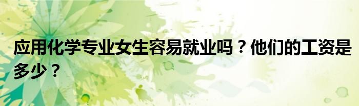 应用化学专业女生工资待遇应用化学专业毕业生适合在石油化工、环保、商检、卫生防疫、海关、医药和精细化工厂、厂矿等生产、技术和行政部门从事应用研究、科技开发、生产技术和管理工作;适合在科研部门和学校从事科研和教学工作;适合继续攻读应用化学及相关学科硕士学位。