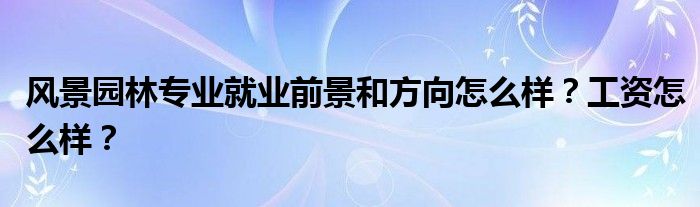 风景园林专业就业前景好吗?风景园林专业是比较有前途的专业。随着中国经济的发展,国家一定会更加重视精神文明。所以如果你技术过硬,在风景园林专业有所成就,你会找到一份非常好的工作,在国家政府部门前途无量。