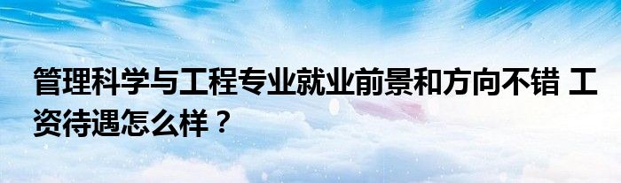 管理与工程专业是一级学科,涉及管理学、经济学和系统科学的知识,是一门交叉学科。就业范围广,社会需求旺盛。最好能考研,深造,对你的就业更是锦上添花。边肖整理了相关问题,让我们一起来看看吧!