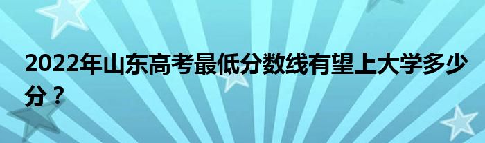 2022年山东高考最低分一般是各批次最低分。山东省考生如果想上本科大学,估计普通类第一分需要达到445以上,普通类第二分需要达到150以上。