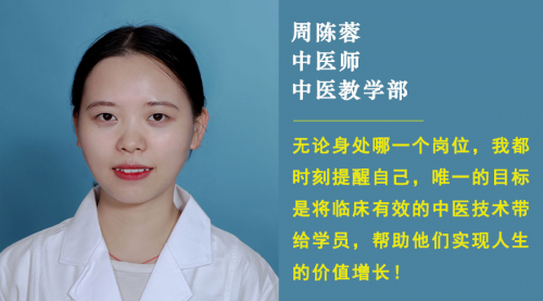 出身于中医针灸推拿专业的周陈蓉,偶然间被红杏林灵枢疗法吸引,从此成为一名坚定的中医传道人。从助教到教务,再到中医师,周陈蓉历经不同岗位的历练,却始终抱守初心,帮助红杏林学员在中医的世界里,开启新的人生篇章。