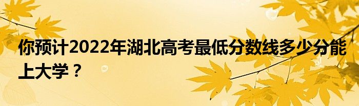 2022年湖北高考预期分数线是多少?根据近三年湖北高考分数线,2022年湖北物理本科最低分数线预计在400分左右;湖北历史本科最低分预计460左右;湖北学院2022年最低分数线200。