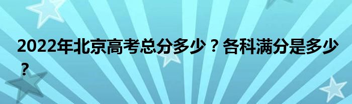 2022年北京市高考总分750分,其中语文、数学、外语各150分,其他三门选考科目各满分100分(采用绩点)。北京高考不是全国统考,各科采用自主命题。