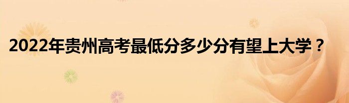 2022年贵州高考最低分一般是各批次最低分。贵州考生如果想上本科大学,估计文科生需要达到480分以上,理科生需要达到370分以上。如果他们要上大专,估计文科生的分数要达到180以上。