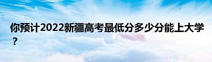 2022年新疆高考预计分数线是多少?根据近三年新疆高考分数线,2022年新疆一本文科最低分预计在470左右;新疆理科一本最低分预计405分左右,新疆文科二本最低分预计350分左右;预计2022年,新疆二本理科最低分300分;2022年新疆文理学院最低分数线140;2022年新疆理学院最低分:140。