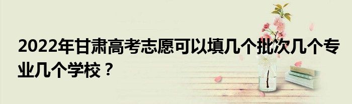 甘肃高考普通文理共四个志愿批次,分别为本科提前批(B、D、E、F)、本科第一批(I)、本科第二批(K)和高职(专科)批次(Q、R),实行平行志愿。9个院校志愿,每个院校志愿设置6个专业选项和1个学科专业调剂选项。