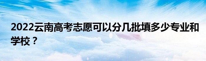 2022年云南高考志愿填报时间尚未公布。根据往年经验,云南高考志愿按照文史、理工、艺术和“三校生”设置。一般有提前批、本科批(本科一批、本科二批)、专科批、其他批。
