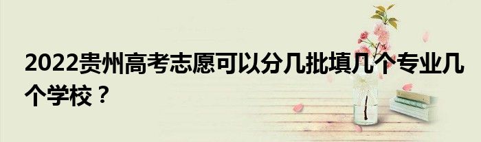 贵州高考志愿批次包括:提前批、本科批次(本科一批、本科二批)、高职(专科)批次。本科会征集志愿,高职会征集志愿。本批次、二批次、专科批次共8个高校志愿者团体。每个志愿最多可填报6个专业。以下是具体的志愿设置: