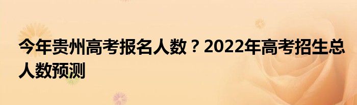贵州高考预计报名人数是多少?2022年各省报名人数2021年广西46万人,2020年广西50.7万人,2019年广西46万人。官方尚未公布2022年贵州高考报名人数,但根据往年贵州参加高考的人数,边肖预测2022年贵州高考报名人数可能超过50万。每年高考报名人数是每个高考考生关注的一个重要数据。高考报名人数不仅影响录取率,也影响高考难度。高考人数从大数据占比来看,与高考难度成正比,与高考录取率成反比。