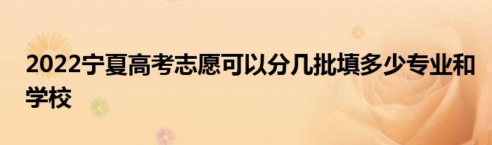 宁夏高考志愿按录取批次设置。录取分为六个批次,即:提前批本科、提前批高职、提前批本科、提前批本科、提前批高职、提前批高职。志愿数量为:“学校专业”志愿考生可填报不超过6个院校志愿,每个院校志愿可填报不超过6个专业志愿和专业服从志愿。