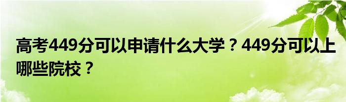 高考449分最低分的学校:最低分449的北京物资学院、最低分449的贵州轻工学院、最低分449的安徽医学院、最低分449的江苏卫生职业学院、最低分449的黔南民族医学院。