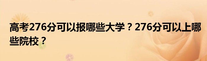 高考276分的学校:桂林理工大学、山东城建职业学院、淄博职业学院、吉安职业技术学院、廊坊燕京职业技术学院、德宏职业学院。