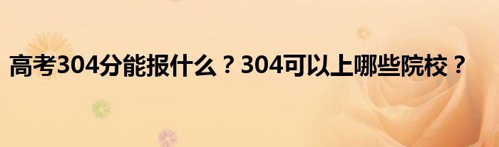 高考304分的学校:广东云浮中医药职业学院、黑龙江农业经济职业学院、河北能源职业学院、山东商贸职业学院、潍坊职业学院、黑龙江生态工程职业学院、吉林工程技术师范学院。