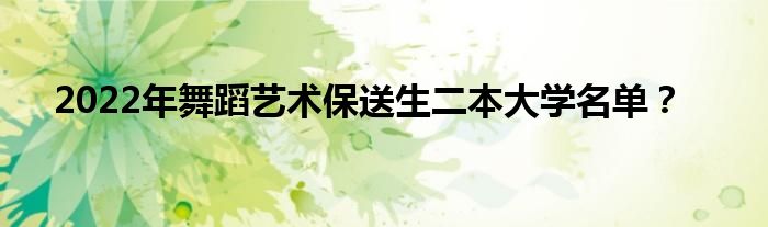 二本舞蹈大学分别是:新疆艺术学院、吉林艺术学院、山东艺术学院、广州艺术学院、南京艺术学院、云南艺术学院、四川美术学院等。