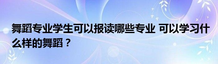 学生报考大学舞蹈时,只能选择与舞蹈相关的专业,一般包括以下几个:舞蹈表演、舞蹈科学、编导、舞蹈教育、音乐舞蹈等。不同的专业有不同的研究方向,可以根据自己的情况选择合适的专业。