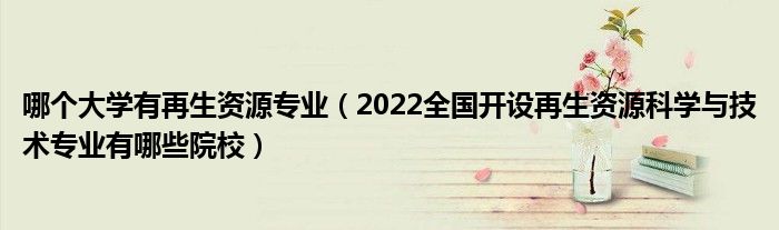 1、哪些大学开设了再生资源科学与技术专业呢?以下是开设再生资源科学与技术专业的详细院校名单(排名不分先后):