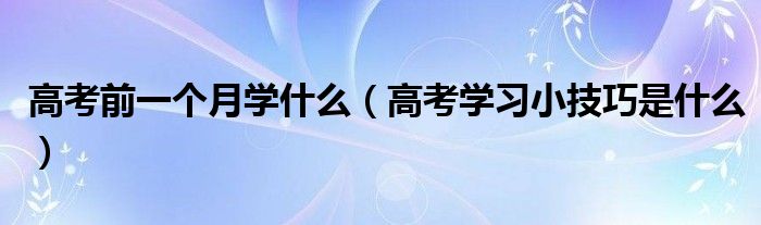 大家好,小高来为大家解答以上问题。高考前一个月学什么,高考学习小技巧是什么很多人还不知道,现在让我们一起来看看吧!