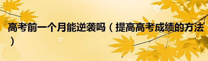 大家好,小高来为大家解答以上问题。高考前一个月能逆袭吗,提高高考成绩的方法很多人还不知道,现在让我们一起来看看吧!