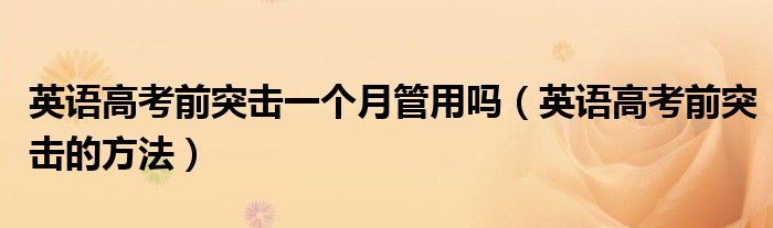 大家好,小高来为大家解答以上问题。英语高考前突击一个月管用吗,英语高考前突击的方法很多人还不知道,现在让我们一起来看看吧!