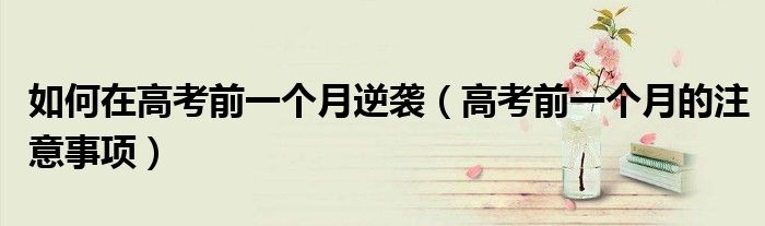 大家好,小高来为大家解答以上问题。如何在高考前一个月逆袭,高考前一个月的注意事项很多人还不知道,现在让我们一起来看看吧!