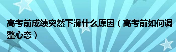 大家好,小高来为大家解答以上问题。高考前成绩突然下滑什么原因,高考前如何调整心态很多人还不知道,现在让我们一起来看看吧!