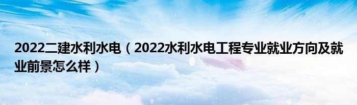 大家好,小高来为大家解答以上问题。2022二建水利水电,2022水利水电工程专业就业方向及就业前景怎么样很多人还不知道,现在让我们一起来看看吧!