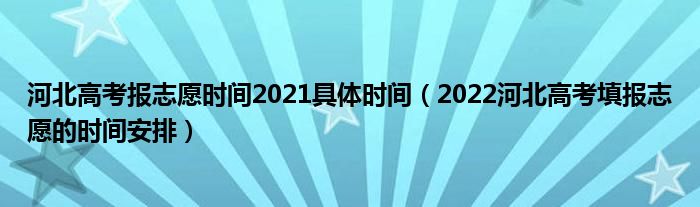 大家好,小高来为大家解答以上问题。河北高考报志愿时间2021具体时间,2022河北高考填报志愿的时间安排很多人还不知道,现在让我们一起来看看吧!