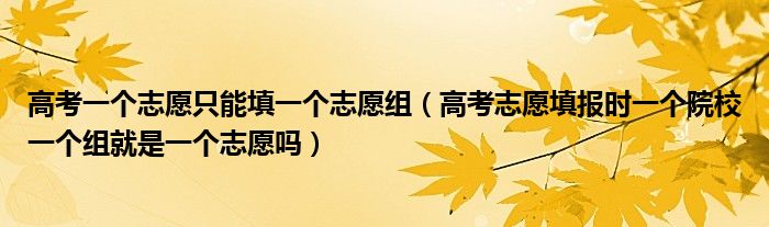 大家好,小高来为大家解答以上问题。高考一个志愿只能填一个志愿组,高考志愿填报时一个院校一个组就是一个志愿吗很多人还不知道,现在让我们一起来看看吧!