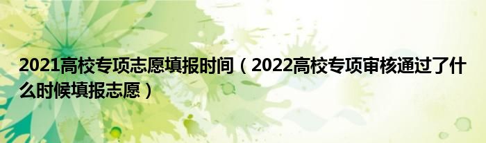 大家好,小高来为大家解答以上问题。2021高校专项志愿填报时间,2022高校专项审核通过了什么时候填报志愿很多人还不知道,现在让我们一起来看看吧!