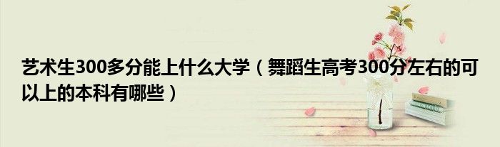 大家好,小高来为大家解答以上问题。艺术生300多分能上什么大学,舞蹈生高考300分左右的可以上的本科有哪些很多人还不知道,现在让我们一起来看看吧!