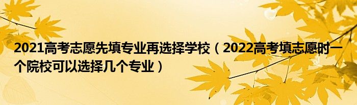 大家好,小高来为大家解答以上问题。2021高考志愿先填专业再选择学校,2022高考填志愿时一个院校可以选择几个专业很多人还不知道,现在让我们一起来看看吧!