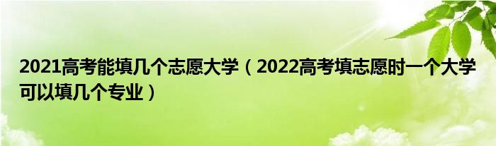 大家好,小高来为大家解答以上问题。2021高考能填几个志愿大学,2022高考填志愿时一个大学可以填几个专业很多人还不知道,现在让我们一起来看看吧!