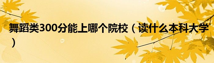 大家好,小高来为大家解答以上问题。舞蹈类300分能上哪个院校,读什么本科大学很多人还不知道,现在让我们一起来看看吧!