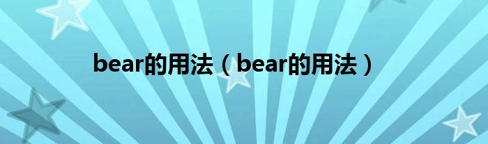 大家好,小高来为大家解答以上问题。bear的用法,bear的用法很多人还不知道,现在让我们一起来看看吧!