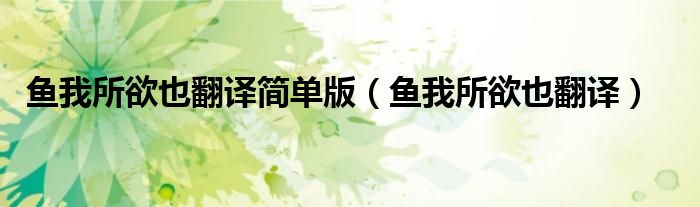 大家好,小高来为大家解答以上问题。鱼我所欲也翻译简单版,鱼我所欲也翻译很多人还不知道,现在让我们一起来看看吧!