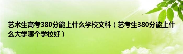 大家好,小高来为大家解答以上问题。艺术生高考380分能上什么学校文科,艺考生380分能上什么大学哪个学校好很多人还不知道,现在让我们一起来看看吧!