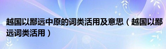 大家好,小源来为大家解答以上问题。越国以鄙远中原的词类活用及意思,越国以鄙远词类活用很多人还不知道,现在让我们一起来看看吧!