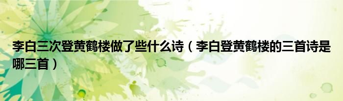 大家好,小高来为大家解答以上问题。李白三次登黄鹤楼做了些什么诗,李白登黄鹤楼的三首诗是哪三首很多人还不知道,现在让我们一起来看看吧!