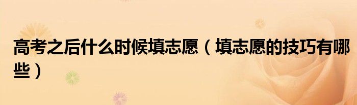 大家好,小高来为大家解答以上问题。高考之后什么时候填志愿,填志愿的技巧有哪些很多人还不知道,现在让我们一起来看看吧!