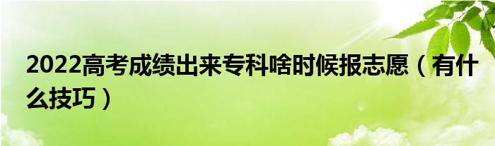 大家好,小高来为大家解答以上问题。2022高考成绩出来专科啥时候报志愿,有什么技巧很多人还不知道,现在让我们一起来看看吧!