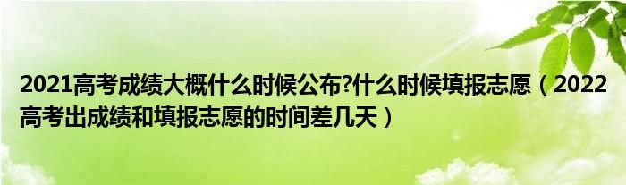 大家好,小高来为大家解答以上问题。2021高考成绩大概什么时候公布?什么时候填报志愿,2022高考出成绩和填报志愿的时间差几天很多人还不知道,现在让我们一起来看看吧!