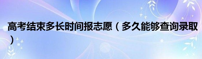 大家好,小高来为大家解答以上问题。高考结束多长时间报志愿,多久能够查询录取很多人还不知道,现在让我们一起来看看吧!