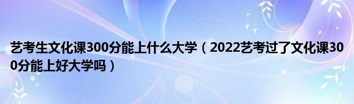 大家好,小高来为大家解答以上问题。艺考生文化课300分能上什么大学,2022艺考过了文化课300分能上好大学吗很多人还不知道,现在让我们一起来看看吧!